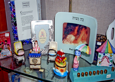 The Sisterhood Boutique and Judaica Showcase located in the main lobby is open at meetings and events. Our boutique offers many beautiful ritual items for the home such as mezuzot, kiddush cups, challah boards, havdalah sets and tzedakah boxes. Also available are tallitot for both men and women and a large selection of gift items. As each holiday approaches, the shop features special items for that particular holiday. A phone call to the Temple office, (718) 224-0404, will put you in touch with someone to help you with your shopping.